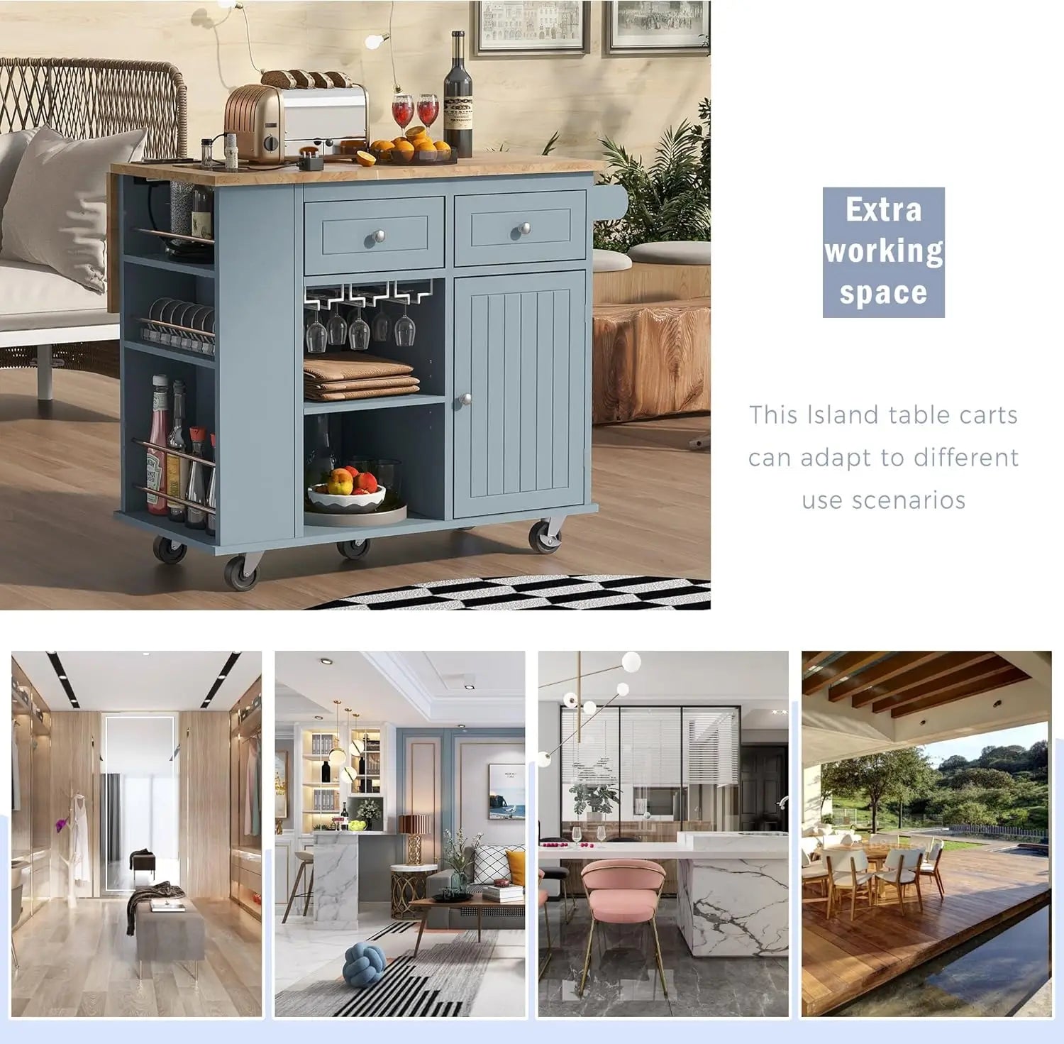 Island Drop Leaf & Wine RackPortable Rolling Cart W/Power Outlet